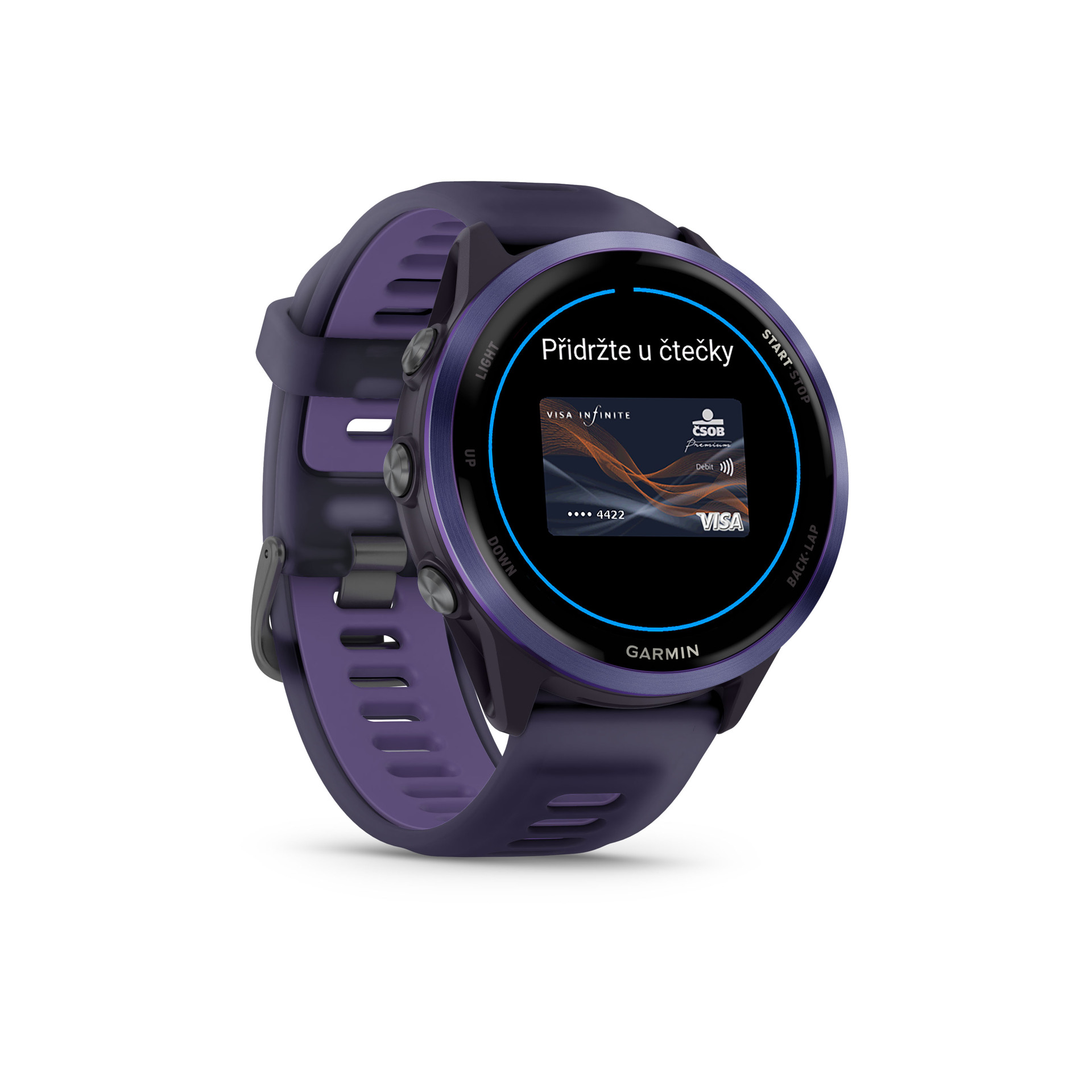 Model s velikostí 47mm, fialová verze.Garmin Forerunner 570 jsou chytré běžecké hodinky s GPS a naším nejjasnějším AMOLED displejem, hliníkovou lunetou a pokročilými tréninkovými funkcemi. Provedou vás přípravou na závod s personalizovanými běžeckými a triatlonovými plány Trenéra Garmin. Díky funkcím, jako je připravenost k tréninku a stav tréninku zjistíte, jestli jste momentálně připraveni na trénink a zda dlouhodobě trénujete produktivně.