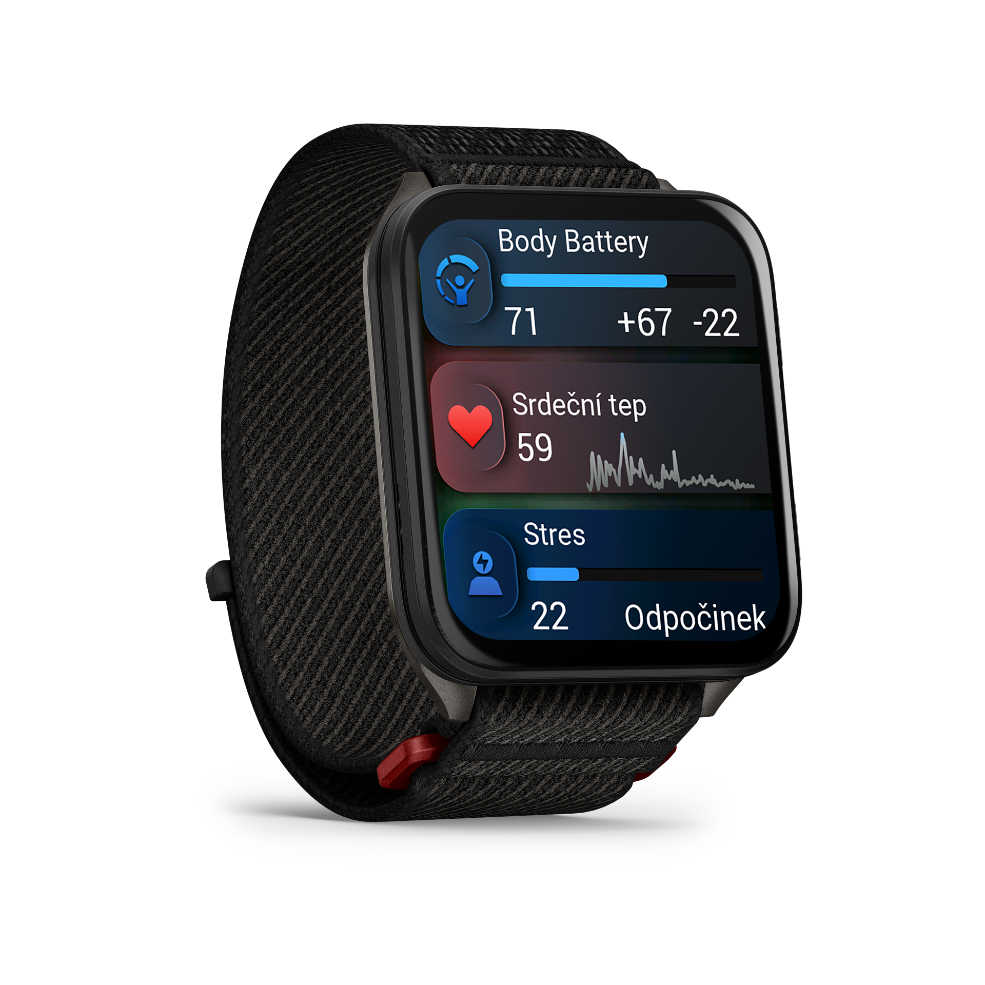 Prémiové chytré GPS hodinky v tenkém designu s bohatou kombinací sportovních, fitness a zdravotních funkcí, vhodné pro každodenní nošení a všestranné sportovní využití. Hranatý 2“ zářivý AMOLED displej krytý safírovým sklíčkem v 8 mm tenkém pouzdře s titanovým dnem, doplněný nylonovým řemínkem ComfortFit.  Díky lehké konstrukci (40g) skvěle sedí na zápěstí. S výdrží baterie až 8 dní (v režimu chytrých hodinek) změříte a podrobně zaznamenáte většinu vašich běžných aktivit včetně běhu, plavání, cyklistiky, lyžování, silového tréninku a další. Díky předehraným mapovým podkladům můžete sledovat vaši polohu, navigovat se, nebo využít databázi golfových hřišť přímo v hodinkách. Přesné sledování běžeckých metrik, výkonu, srdečního tepu, kvality spánku, hladiny stresu či úrovně vaší energie pomocí funkce Body Battery, pak poskytuje ucelený přehled o vaší výkonnosti a zdravotním stavu. Jistě oceníte praktickou nastavitelnou LED svítilnu, ABC senzory, Bluetooth volání a příjem notifikací z Android i iOS telefonů či bezkontaktní platby Garmin Pay. V hodinkách nechybí ani ovládání hudby z telefonu a podpora streamovacích platforem, jako je Spotify, YouTube music a další.