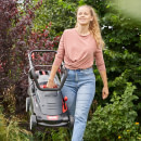 To beze zbytku naplňuje kompaktní model 34.4 E Comfort se záběrem 34 cm a bez přesahujících koleček – ideální pro přesně dosečení až k okrajům trávníku, v rozích nebo pro menší, členité zahrady. Tato lehká sekačka s velkými XL koly a příjemným pogumovaným držadlem je optimální stroj pro méně zkušené uživatele nebo starší majitele zahrad – díky nízké hmotnosti se snadno pohybuje i přenáší.