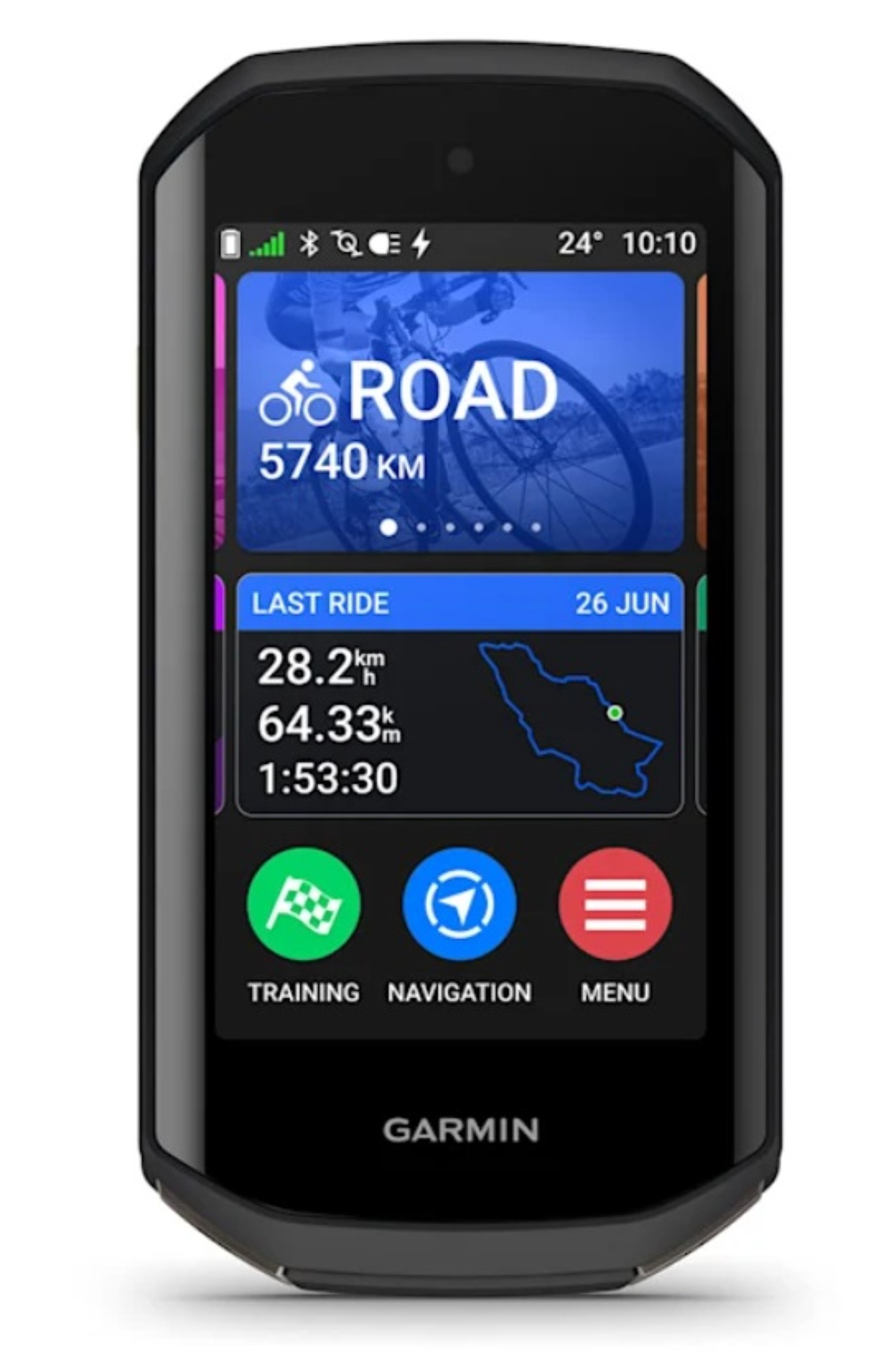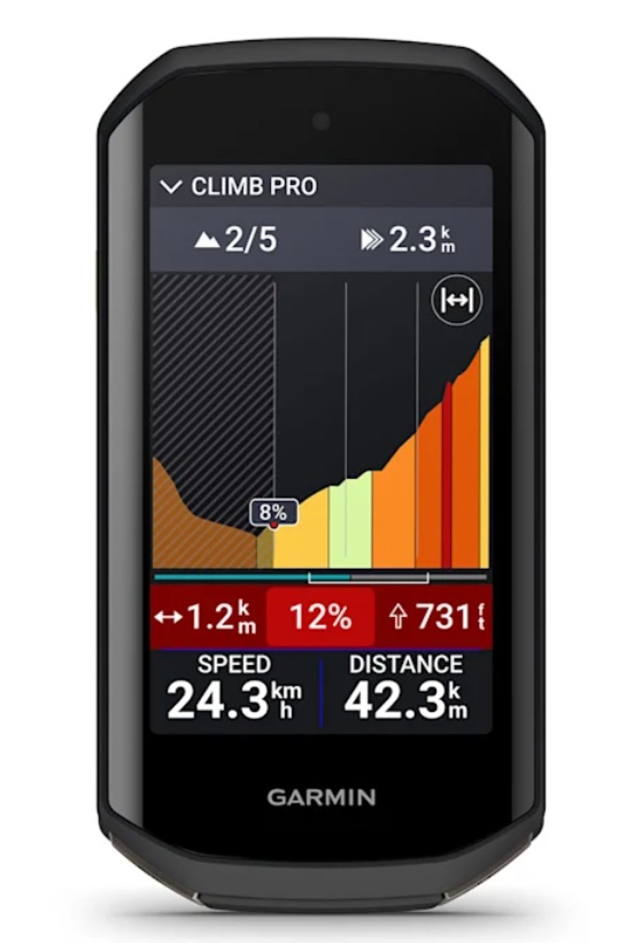 Garmin Edge 1050 je prémiový GPS cyklopočítač s velkým, jasným, dotykovým displejem a vydrží až 20 hodin na 1 nabití akumulátoru. Při propojení s kompatibilním smartphonem a aplikací Garmin Connect poskytuje cyklopočítač za jízdy upozornění na nebezpečí na silnici, zprávy od ostatních cyklistů, aktuální žebříčky a další informace.