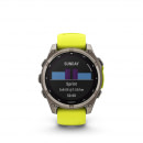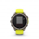 Pokud nejste příznivec AMOLED displeje a raději chcete dát přednost delší výdrži, pak solární verze v řadě Fenix 8 jsou to pravé. Střední velikost 47mm  v barvě surového titanu a žlutým krytem barometru barvě bude spolehlivým parťákem pro každé dobrodružství.