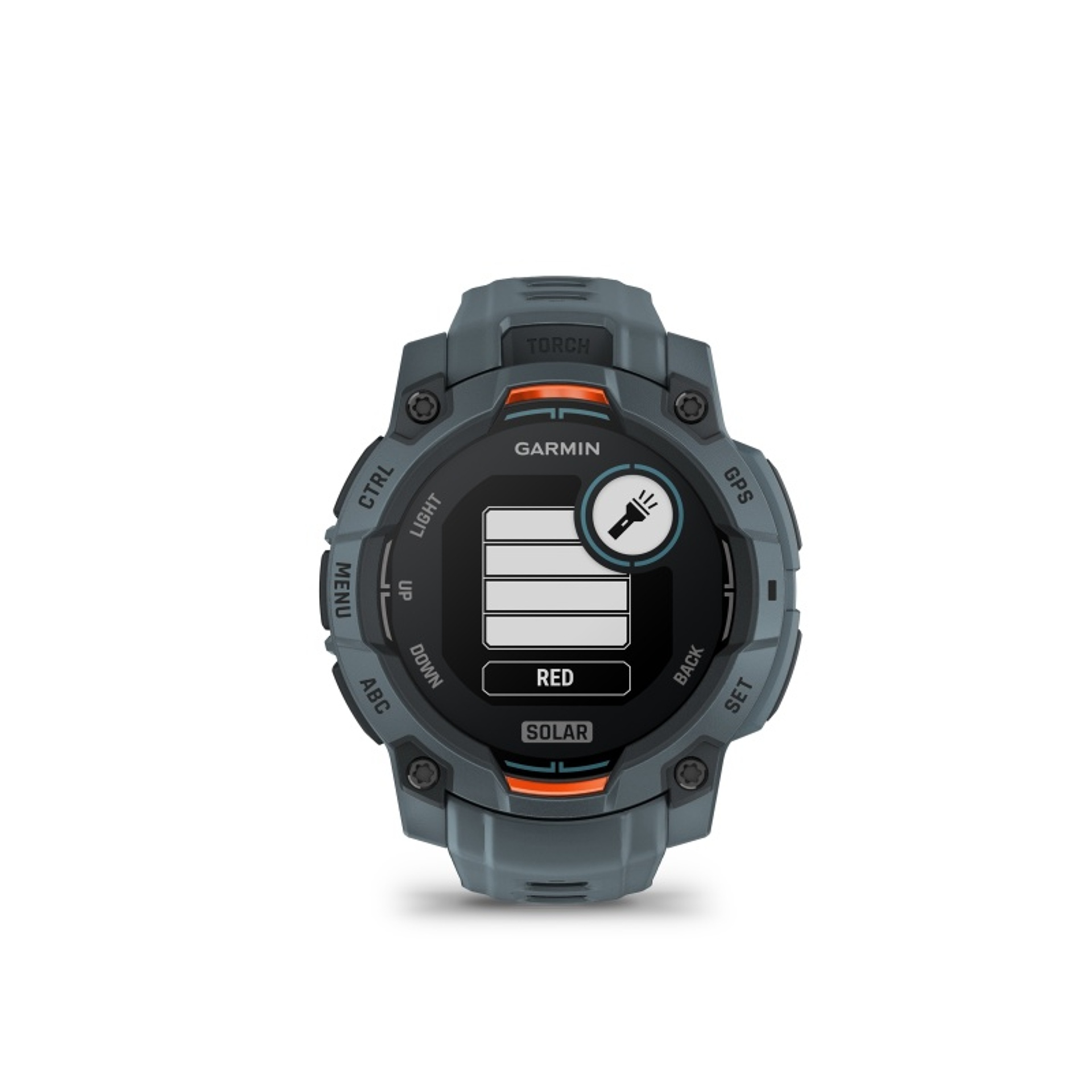 V pouzdře hodinek se ukrývá výkonná LED svítilna s nastavitelným jasem v několika úrovních a světlem bílé nebo červené barvy.