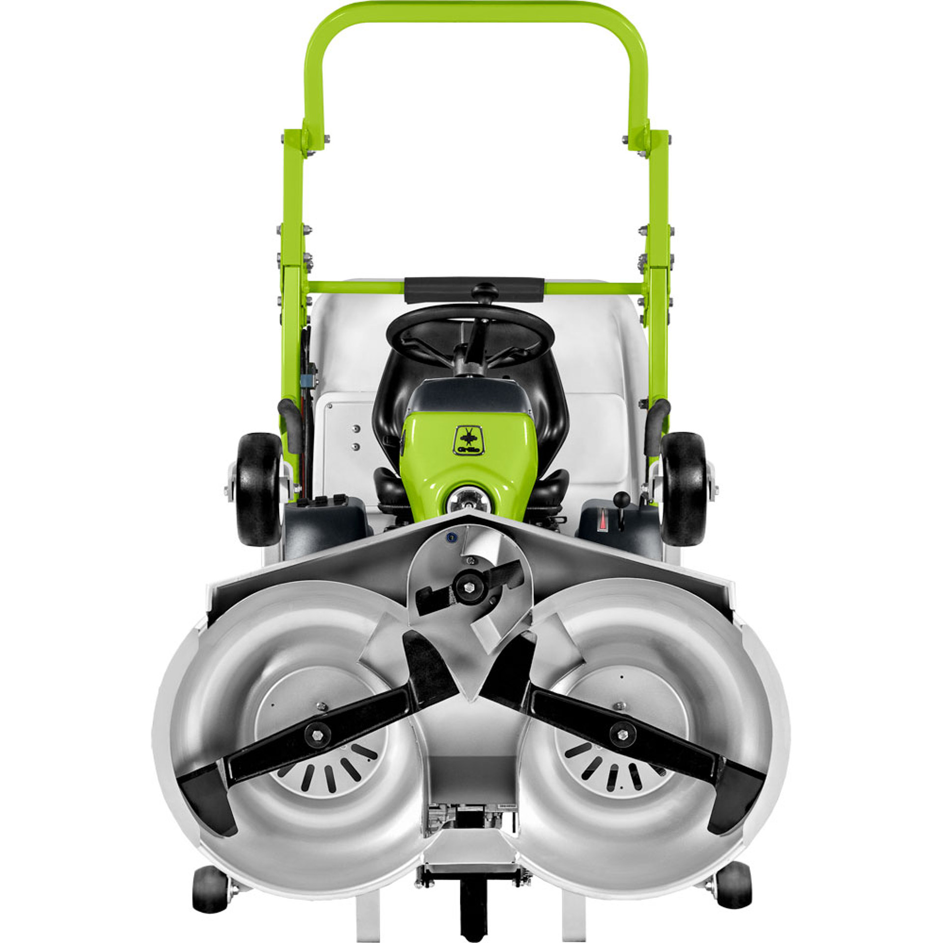 Profesionální hydrostatická sekačka s čelně umístěným žacím ústrojím a velkým sběrným košem o objemu 450 litrů. Pohon předních kol s uzávěrkou, motor Kawasaki.