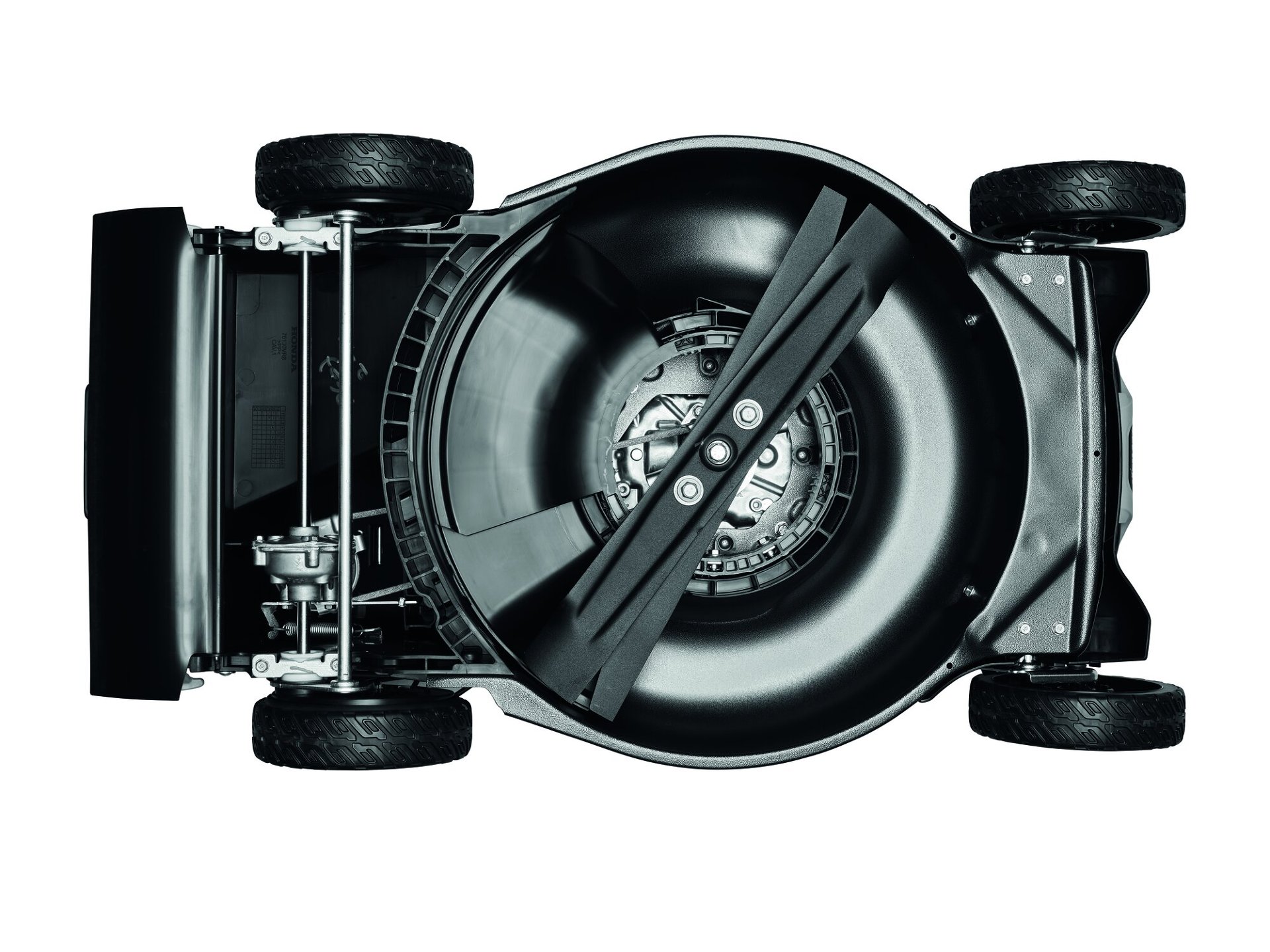 Prostor rotujících sekacích nožů pod sekačkou, na který navazuje kanál průchodu do sběrného koše, je speciálně tvarován tak, aby průtok vzduchu pod sekačkou byl optimální pro všechny pracovní režimy sekačky a způsoby sekání. Je tím docíleno skvělých výsledků jak při sekání se sběrem do travního koše, kdy dochází nejen k dokonalému vyčištění trávníku, ale i k optimálnímu plnění celého objemu koše a tím snížení četnosti vyprazdňování. Sekačka má schopnost posekat a posbírat i mokrou, či vlhkou trávuaniž by docházelo k zahlcení a ucpávání výhozu do sběrného koše. Při mulčování naopak proudící vzduch napomáhá vpravení rozdrcené trávy zpět ke kořenovému systému trávy a není nutné řešit problém kam s posekanou trávou. Při sběru listí je optimálně nadrceno listí do velikosti, kdy lze listí sebrat do sběrného koše a následně uložit do kompostéru. Systém Optiflow značně zlepšuje schopnosti sekačky dokonale posbírat posekanou trávu. Materiál Polystrong, z něhož je šasi sekačky vyrobeno, je speciální a vysoce pevný plast, který si zachovává svoji elasticitu. Jde o obdobu materiálu na výrobu ochranných přileb pro hokejisty, hráče amerického fotbalu nebo mantinely hokejových kluzišť!